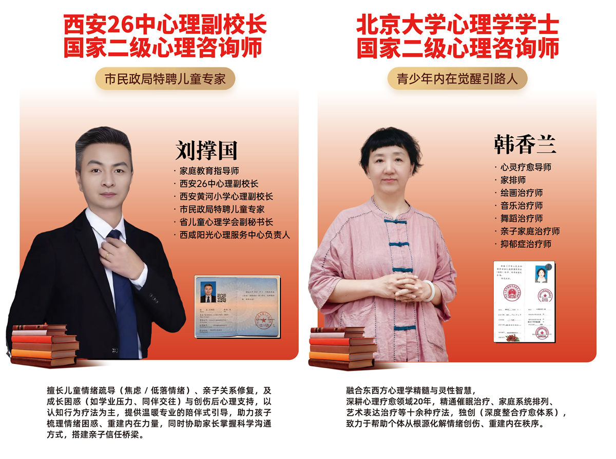 :5名国家级心理咨询专家领衔,12名国家二级心理咨询师全员上阵,平均从业年限超8年,均参与教育部"成长动力激发课程"研发。